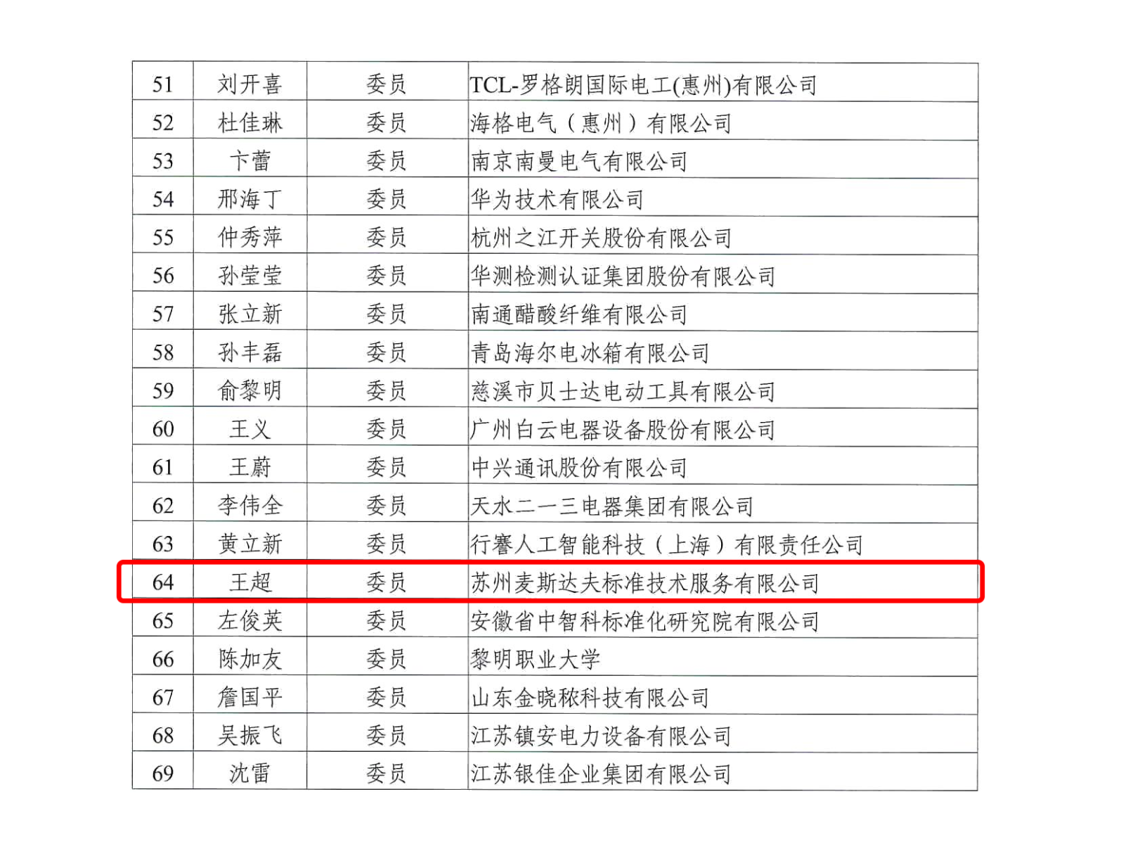 2022年10月28日,國(guó)家標(biāo)準(zhǔn)化管理委員會(huì)批準(zhǔn)全國(guó)電氣安全標(biāo)準(zhǔn)化技術(shù)委員會(huì)換屆并公布組成方案。麥斯達(dá)夫標(biāo)準(zhǔn)化首席運(yùn)營(yíng)官王超當(dāng)選第五屆全國(guó)電氣安全標(biāo)準(zhǔn)化技術(shù)委員會(huì)委員。