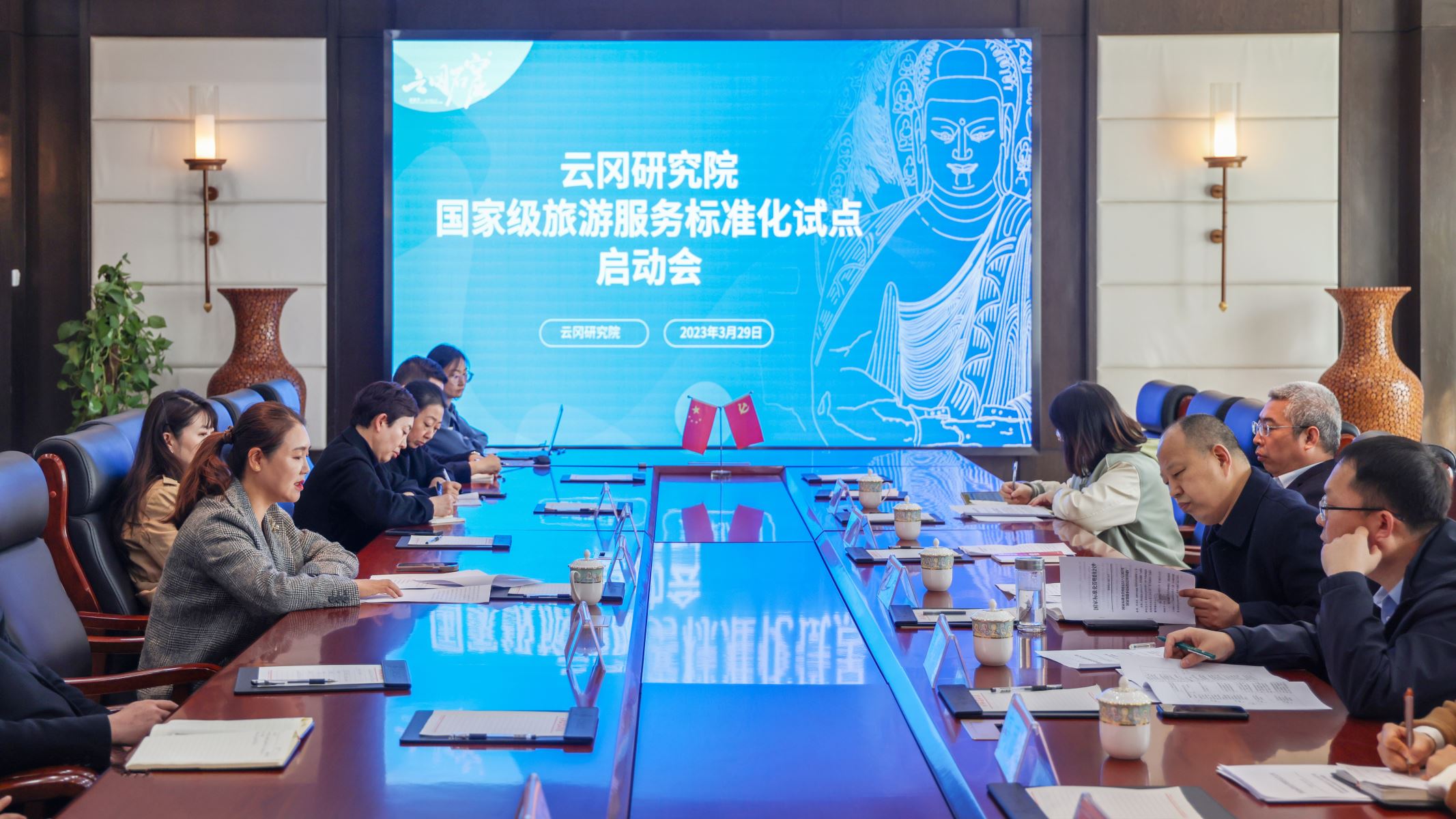 2023年3月29日,云岡研究院國(guó)家級(jí)旅游服務(wù)標(biāo)準(zhǔn)化試點(diǎn)啟動(dòng)儀式在山西大同召開(kāi)。大同市市場(chǎng)監(jiān)督管理局四級(jí)調(diào)研員安建貴、大同市文化和旅游局四級(jí)調(diào)研員常煒,云岡研究院黨委委員、文旅融合發(fā)展中心主任崔曉霞等出席會(huì)議,大同市文化和旅游局、市場(chǎng)監(jiān)督管理局及云岡研究院旅游服務(wù)標(biāo)準(zhǔn)化試點(diǎn)工作小組成員參加會(huì)議。會(huì)議由崔曉霞主持。