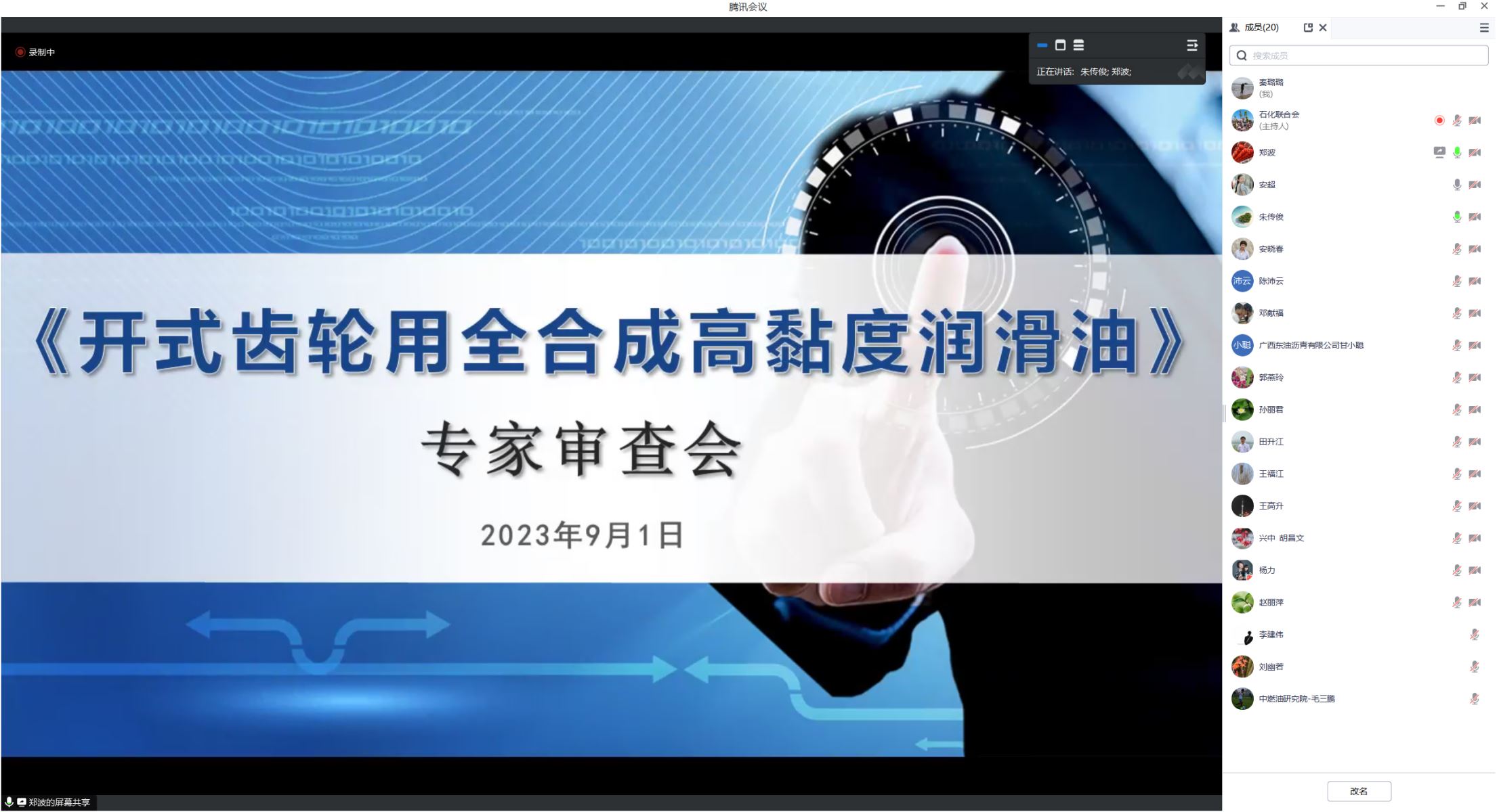 2023年9月1日,中國石油和化學(xué)工業(yè)聯(lián)合會(huì)組織召開《開式齒輪用全合成高黏度潤滑油》《輥壓機(jī)軸承潤滑脂》兩項(xiàng)團(tuán)體標(biāo)準(zhǔn)審查會(huì)。中海油天津化工研究設(shè)計(jì)院教授級(jí)高工朱傳俊主持會(huì)議。