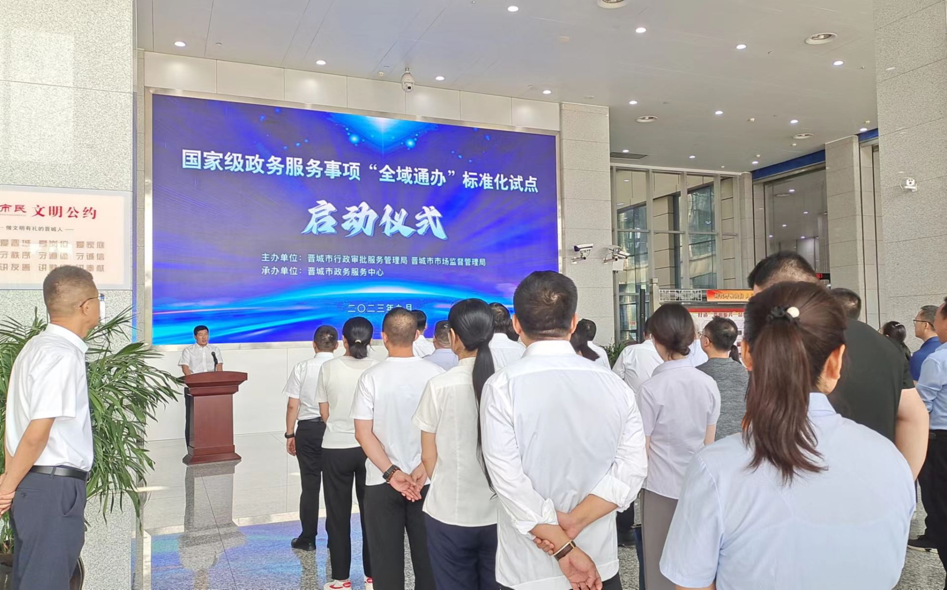 2023年9月5日,山西晉城政務(wù)服務(wù)事項(xiàng)“全域通辦”標(biāo)準(zhǔn)化試點(diǎn)啟動(dòng)儀式在晉城市政務(wù)服務(wù)中心舉辦。市政府副秘書長,市行政審批服務(wù)管理局黨組書記、局長霍晉斌,市市場(chǎng)監(jiān)督管理局黨組書記、局長朱慧杰,市行政審批服務(wù)管理局黨組成員、市政務(wù)服務(wù)中心主任牛大偉,市市場(chǎng)監(jiān)督管理局三級(jí)調(diào)研員王勁等出席啟動(dòng)儀式,各縣(市、區(qū))行政審批局局長、市行政審批局各業(yè)務(wù)科室科長、市市場(chǎng)監(jiān)管局相關(guān)業(yè)務(wù)科室科長、入駐政務(wù)大廳窗口代表等近百人參加活動(dòng)。啟動(dòng)儀式由市行政審批服務(wù)管理局黨組成員、副局長秦文峰主持。