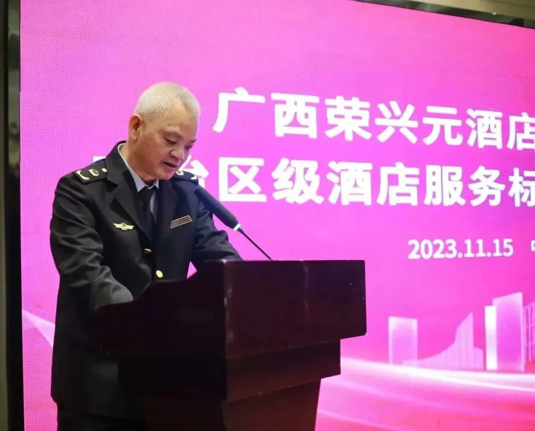 2023年11月15日,廣西榮興元酒店管理有限公司自治區(qū)級(jí)酒店服務(wù)標(biāo)準(zhǔn)化試點(diǎn)啟動(dòng)儀式在防城港市榮興格朗大酒店召開。防城港市市場(chǎng)監(jiān)督管理局副局長(zhǎng)戴大雄、標(biāo)準(zhǔn)化科科長(zhǎng)李燕,防城港市商務(wù)局內(nèi)貿(mào)二科科長(zhǎng)潘培技、接待二科科長(zhǎng)盧柏如,港口區(qū)市場(chǎng)監(jiān)督管理局副局長(zhǎng)譚韓柳,港口區(qū)商務(wù)和口岸管理局內(nèi)貿(mào)股股長(zhǎng)閉奕林,防城港市前程無(wú)憂職業(yè)培訓(xùn)學(xué)校校長(zhǎng)鄭小潔、廣西國(guó)色消防公司總經(jīng)理鐘如述,廣西榮興元集團(tuán)總裁鄧平、駐店總經(jīng)理張經(jīng)緯、副總經(jīng)理王美玉等出席活動(dòng)。