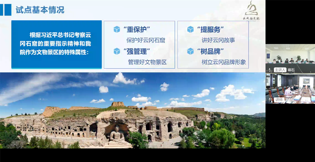 在線上匯報環(huán)節(jié),考核評估專家組通過聽取匯報、質(zhì)詢答辯的形式,對云岡研究院承擔的“云岡研究院旅游服務(wù)標準化試點”進行了綜合評估,高度肯定了試點建設(shè)成效和創(chuàng)新成果,同時建議圍繞旅游高質(zhì)量發(fā)展需求,改進提升標準體系,不斷強化標準實施和持續(xù)改進,深挖旅游服務(wù)標準化建設(shè)工作亮點,總結(jié)提煉經(jīng)驗?zāi)J?,形成可?fù)制、可推廣的云岡標準化樣板。