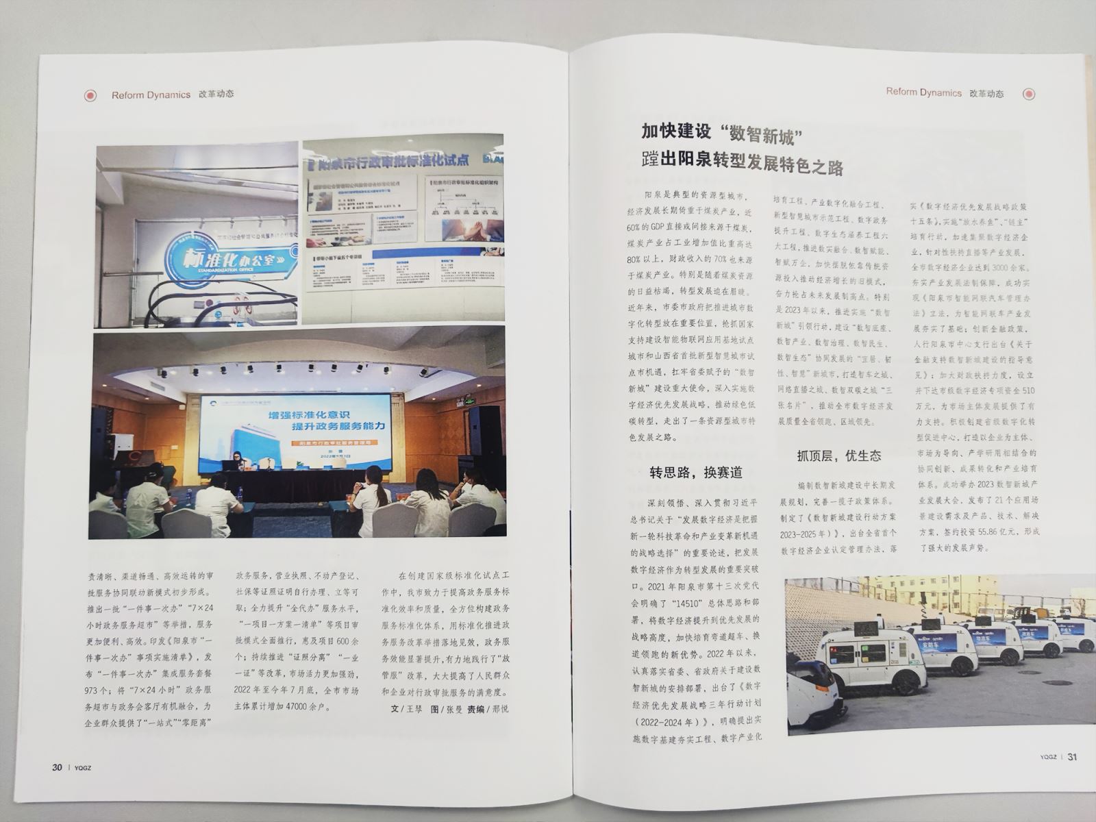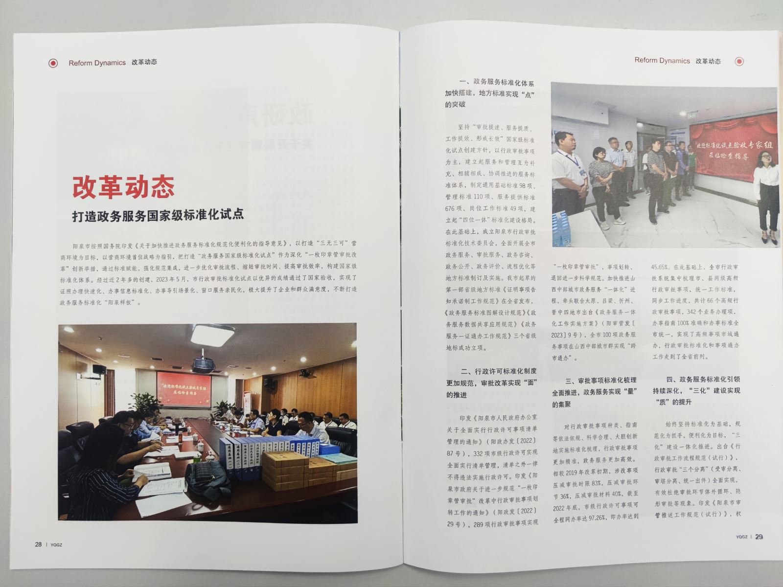 近日,由陽泉市行政審批服務(wù)管理局供稿的《改革動態(tài)——打造政務(wù)服務(wù)國家級標準化試點》在《陽泉工作》2024年第一期刊登。