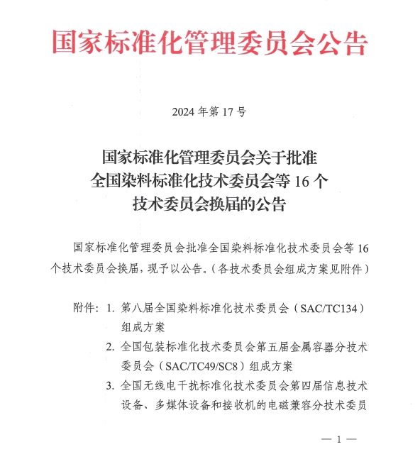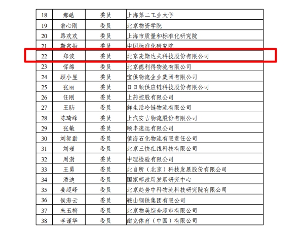 2024年7月29日,國(guó)家標(biāo)準(zhǔn)化管理委員會(huì)發(fā)布2024年第17號(hào)公告,批準(zhǔn)全國(guó)染料標(biāo)準(zhǔn)化技術(shù)委員會(huì)等16個(gè)技術(shù)委員會(huì)換屆。麥斯達(dá)夫標(biāo)準(zhǔn)化首席執(zhí)行官鄭波榮耀當(dāng)選第五屆全國(guó)物流標(biāo)準(zhǔn)化技術(shù)委員會(huì)委員。