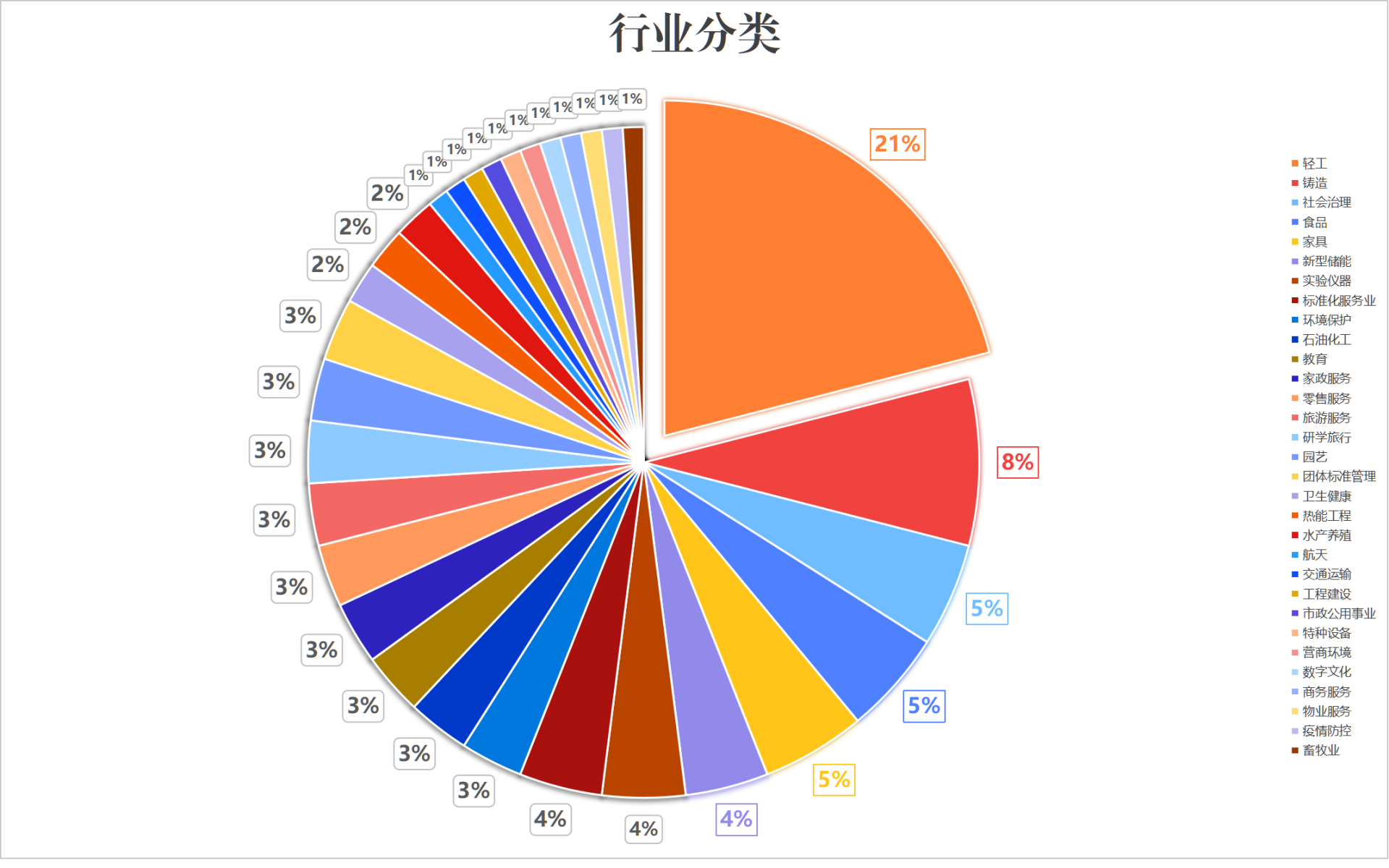從行業(yè)角度來看,涉及了31個行業(yè),分別為輕工21項,占比21%;鑄造8項,占比8%;社會治理、食品、家具分別為5項,占比5%;新型儲能、實驗儀器、標準化服務(wù)業(yè)分別為4項,占比4%;環(huán)境保護、石油化工、教育、家政服務(wù)、零售服務(wù)、旅游服務(wù)、研學(xué)旅行、園藝、團體標準管理分別為3項,分別占比3%;衛(wèi)生健康、熱能工程、水產(chǎn)養(yǎng)殖分別為2項,分別占比2%;航天、交通運輸、工程建設(shè)、市政公用事業(yè)、特種設(shè)備、營商環(huán)境、數(shù)字文化、商務(wù)服務(wù)、物業(yè)服務(wù)、疫情防控、畜牧業(yè)分別為1項,分別占1%。