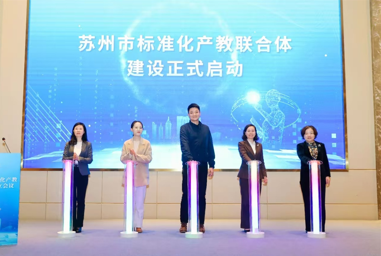 為進(jìn)一步貫徹落實(shí)《標(biāo)準(zhǔn)化人才培養(yǎng)專(zhuān)項(xiàng)行動(dòng)計(jì)劃(2023-2025年)》,有力推進(jìn)產(chǎn)業(yè)、標(biāo)準(zhǔn)化、人才培養(yǎng)互促發(fā)展,實(shí)現(xiàn)以教促產(chǎn)、以產(chǎn)助教,深化產(chǎn)教融合、產(chǎn)學(xué)合作,2024年11月26日,蘇州市標(biāo)準(zhǔn)化產(chǎn)教聯(lián)合體成立會(huì)議召開(kāi)。全國(guó)市場(chǎng)監(jiān)督管理總局專(zhuān)業(yè)技術(shù)人才開(kāi)發(fā)中心網(wǎng)絡(luò)教育部處長(zhǎng)、全國(guó)市場(chǎng)監(jiān)管職業(yè)教育教學(xué)指導(dǎo)委員會(huì)秘書(shū)處辦公室主任陳國(guó)棟,全國(guó)市場(chǎng)監(jiān)管職業(yè)教育教學(xué)指導(dǎo)委員會(huì)標(biāo)準(zhǔn)化類(lèi)專(zhuān)業(yè)委員會(huì)秘書(shū)長(zhǎng)顧興全,江蘇省市場(chǎng)監(jiān)督管理局標(biāo)準(zhǔn)化管理處副處長(zhǎng)王亞杰,蘇州市市場(chǎng)監(jiān)督管理局副局長(zhǎng)王燕,吳中區(qū)人民政府副區(qū)長(zhǎng)李燁,吳中區(qū)市場(chǎng)監(jiān)督管理局局長(zhǎng)孔岳榮,以及來(lái)自市級(jí)機(jī)關(guān)工委、市教育局、市科技局、市人社局、市總工會(huì)、市工商聯(lián)等相關(guān)處室的負(fù)責(zé)人,全市市場(chǎng)監(jiān)管系統(tǒng)有關(guān)負(fù)責(zé)人員、市標(biāo)準(zhǔn)化產(chǎn)教聯(lián)合體首批成員單位等有關(guān)領(lǐng)導(dǎo)和嘉賓出席會(huì)議。