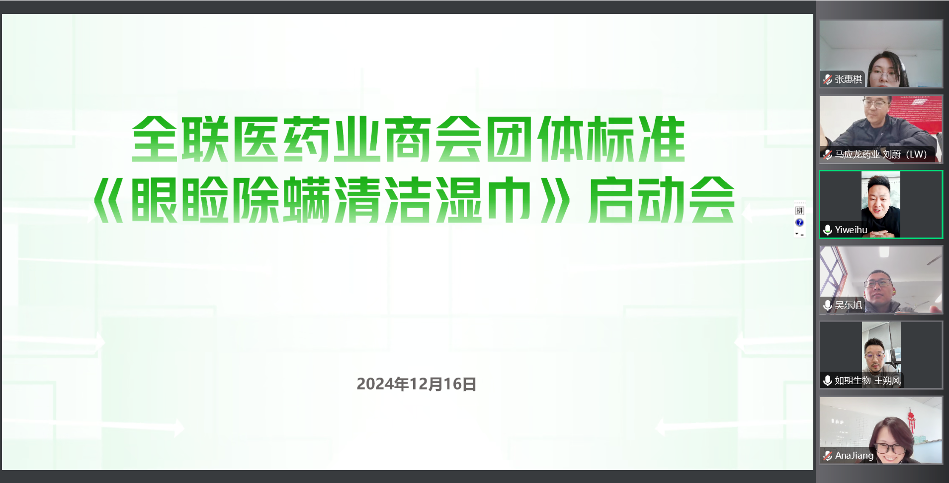 2024年12月16日,全聯(lián)醫(yī)藥業(yè)商會團體標準《眼瞼除螨清潔濕巾》啟動會議以線上會議形式召開。泰州瞳衛(wèi)士眼健康科技有限公司、云南白藥集團醫(yī)療科技合肥有限公司、馬應(yīng)龍藥業(yè)集團股份有限公司、如期(深圳)生物科技有限公司、上海瞳光閃亮健康科技有限公司等標準起草組成員單位派員參會。會議由麥斯達夫標準化市場總監(jiān)、蘇州公司總經(jīng)理王釗柱主持。