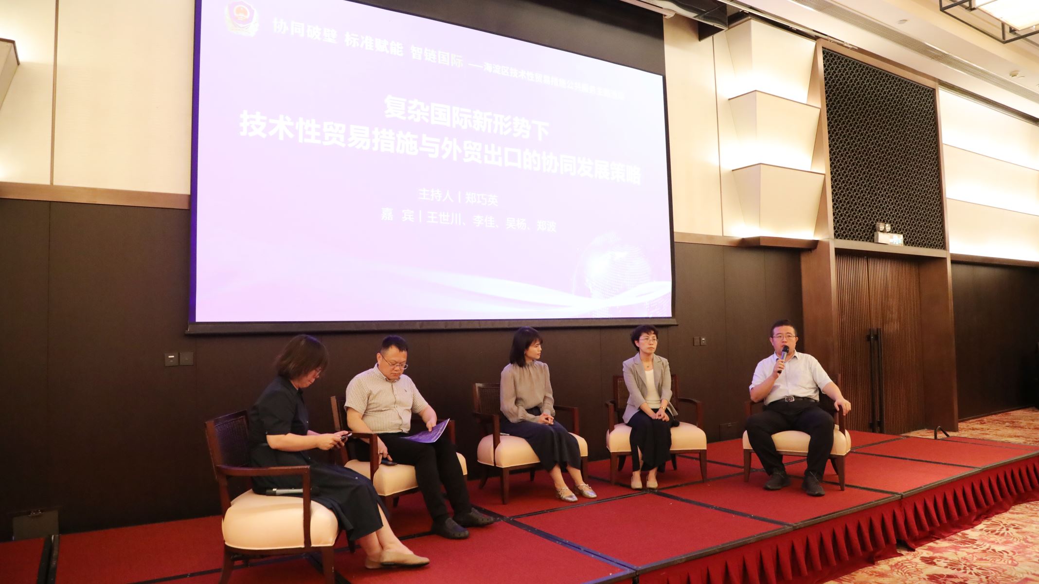 活動安排了主題為“復雜國際新形勢下,技術(shù)性貿(mào)易措施與外貿(mào)出口的協(xié)同發(fā)展策略”的對話交流環(huán)節(jié),由北京標準化協(xié)會秘書長鄭巧英主持。國家市場監(jiān)督管理總局技術(shù)性貿(mào)易措施通報評議中心副主任王世川、中國標準化研究院標準化理論戰(zhàn)略研究所副研究員李佳、中國質(zhì)量認證中心國際合作部副經(jīng)理吳楊,北京麥斯達夫科技股份有限公司創(chuàng)始人、首席執(zhí)行官鄭波作為嘉賓上臺發(fā)言。