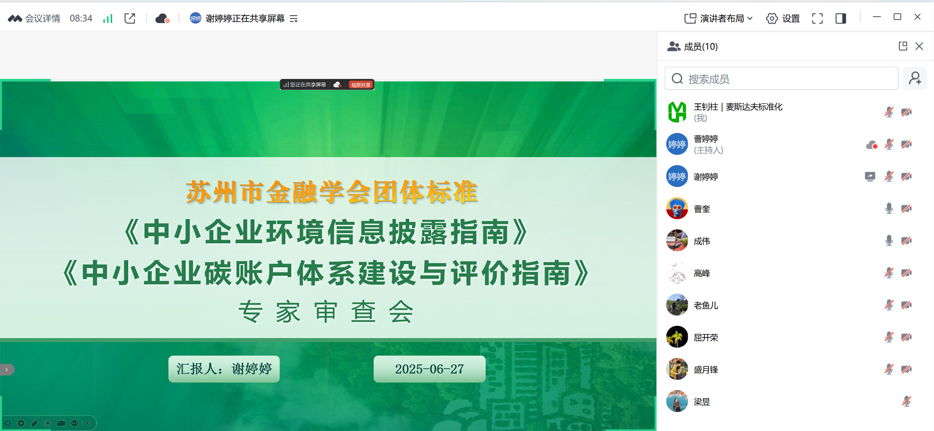 2025年6月27日,蘇州市金融學會組織召開由蘇州資產(chǎn)投資管理集團有限公司主導編制的《中小企業(yè)環(huán)境信息披露指南》《中小企業(yè)碳賬戶體系建設與評價指南》兩項團體標準專家審查會。來自中國標準化研究院、蘇州市計量測試院、興業(yè)銀行蘇州分行、江蘇銀行蘇州分行、張家港農(nóng)村商業(yè)銀行等單位的七位專家組成標準審查專家組。會議由蘇州麥斯達夫標準技術(shù)服務有限公司總經(jīng)理王釗柱主持。
