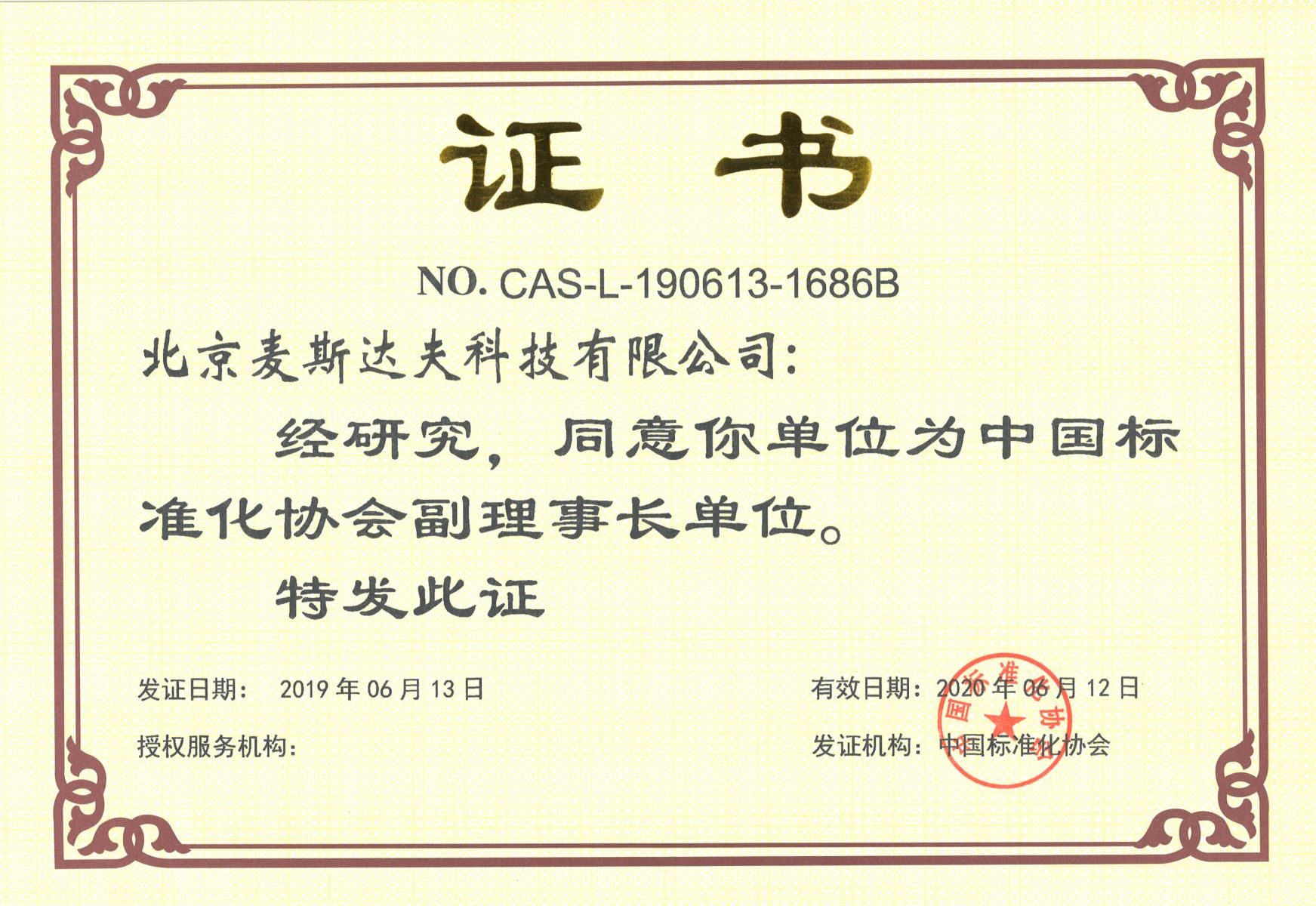 2019年6月13日,麥斯達夫當選中國標準化協(xié)會副理事長單位。