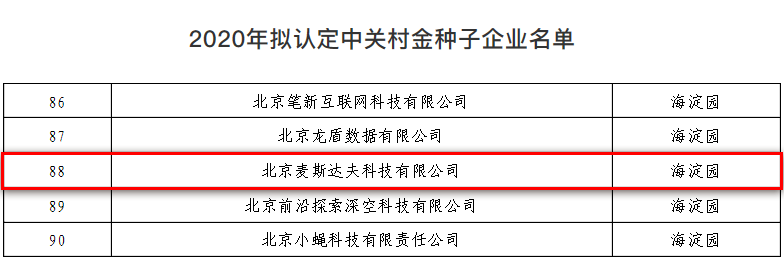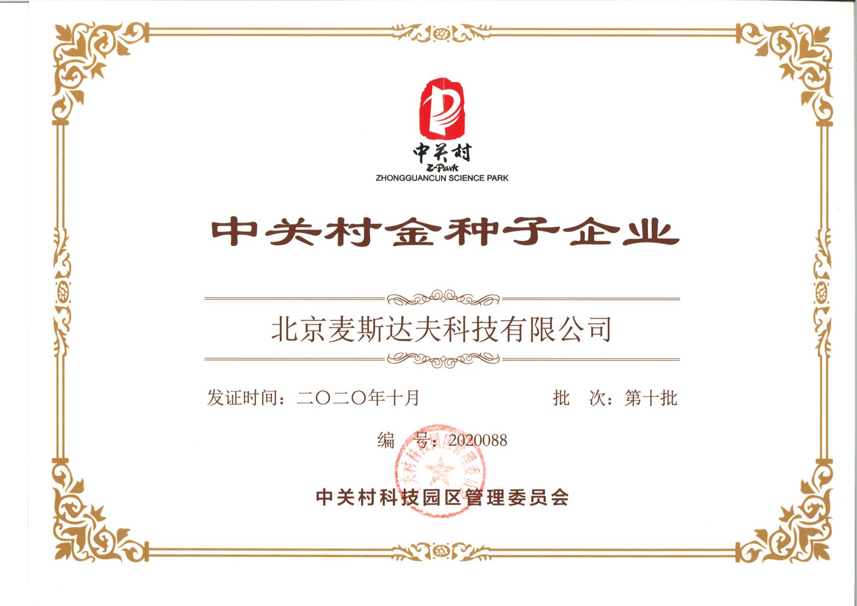 麥斯達夫獲批“2020年中關(guān)村金種子企業(yè)”