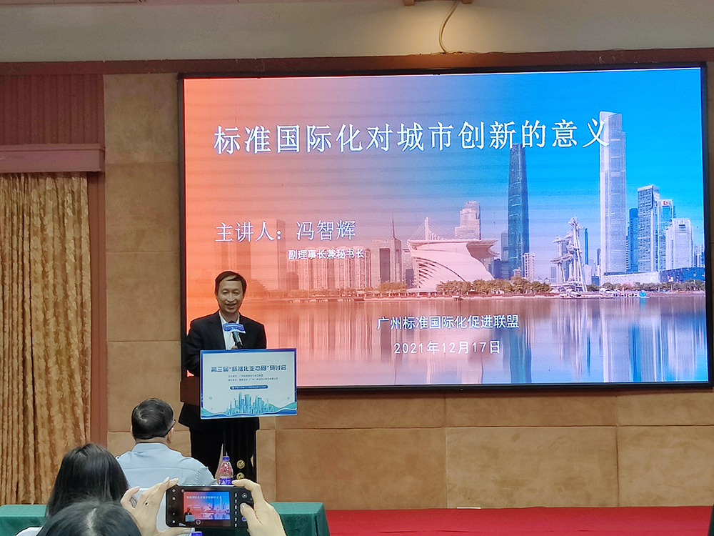 主題演講環(huán)節(jié),首先由廣州市標(biāo)準(zhǔn)化研究院副院長馮智輝作《標(biāo)準(zhǔn)國際化對城市創(chuàng)新的意義》的主題報(bào)告。
