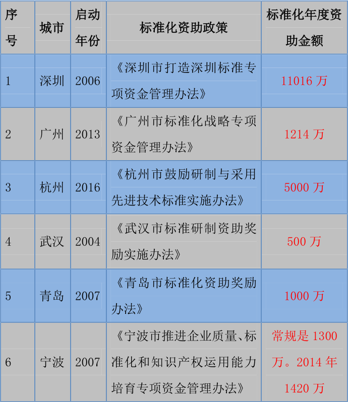 地方政府標(biāo)準(zhǔn)化獎(jiǎng)勵(lì)政策一覽