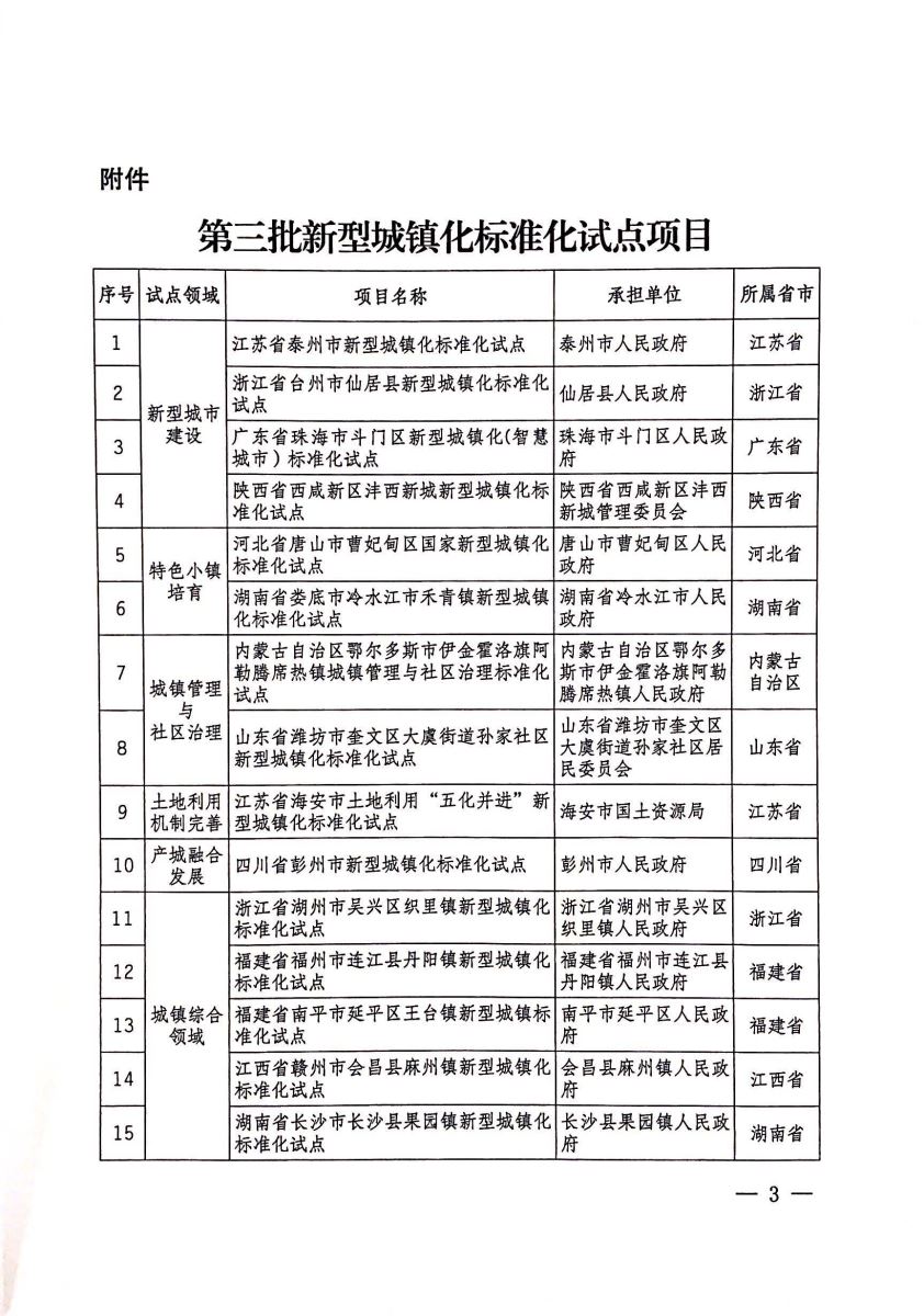 國家標準化管理委員會關于下達第三批新型城鎮(zhèn)化標準化試點項目的通知
