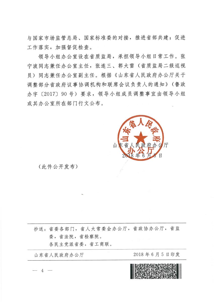 山東省人民政府辦公廳關(guān)于成立山東省實(shí)施標(biāo)準(zhǔn)化戰(zhàn)略(國(guó)家標(biāo)準(zhǔn)化綜合改革試點(diǎn)工作)領(lǐng)導(dǎo)小組的通知