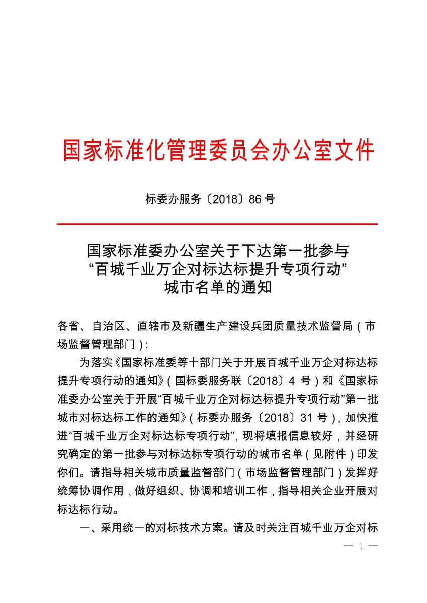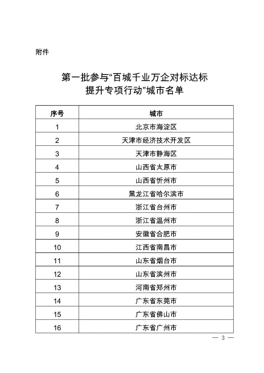 第一批參與“百城千業(yè)萬(wàn)企對(duì)標(biāo)達(dá)標(biāo)提升專項(xiàng)行動(dòng)”城市名單