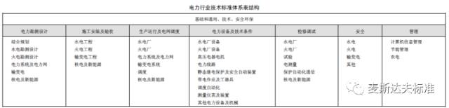 電力行業(yè)技術(shù)標(biāo)準體系表結(jié)構(gòu):