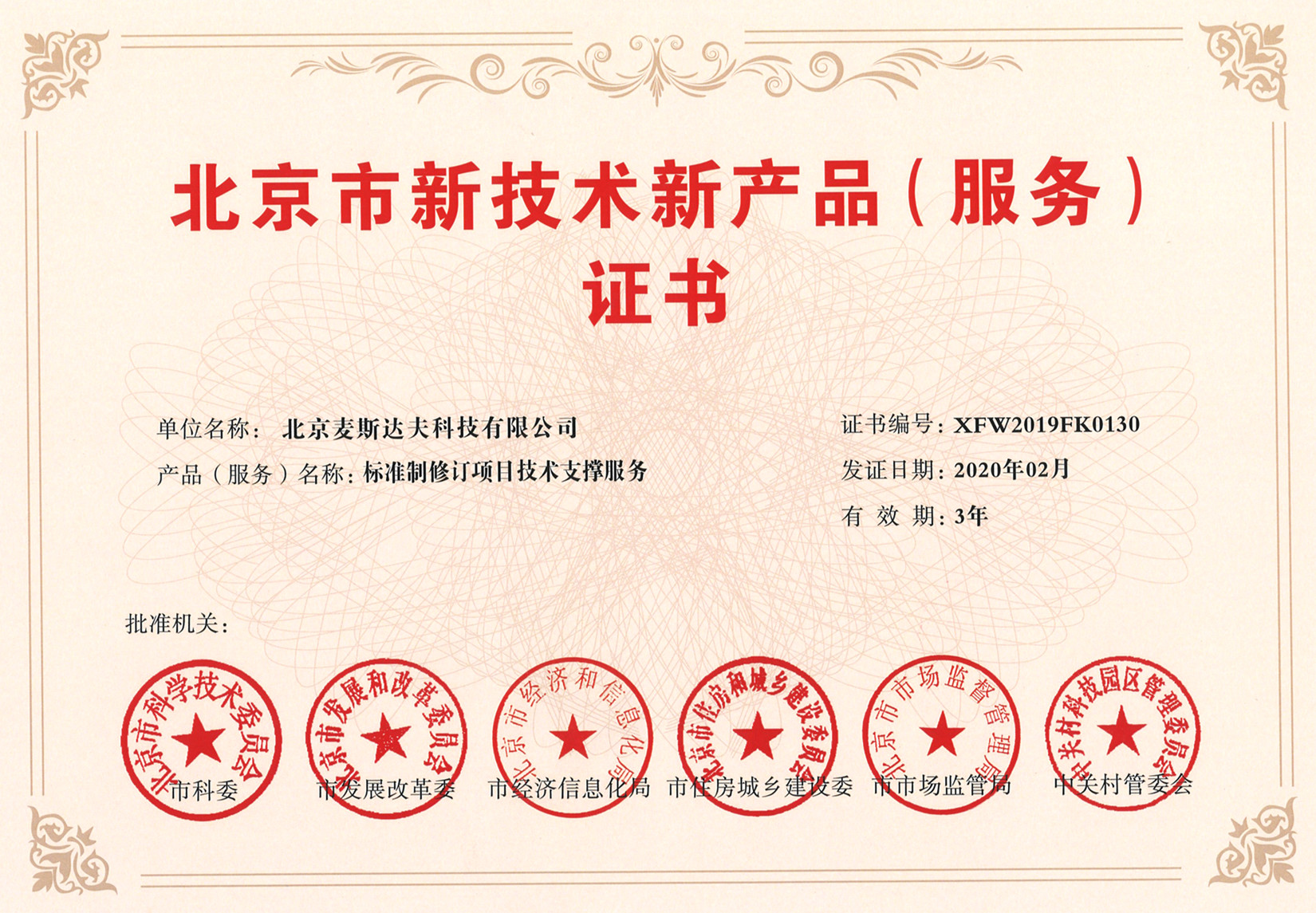 根據(jù)《北京市新技術(shù)新產(chǎn)品(服務(wù))認(rèn)定管理辦法》的規(guī)定,經(jīng)專家評(píng)審及認(rèn)定小組審核,北京市科學(xué)技術(shù)委員會(huì)、北京市發(fā)展和改革委員會(huì)、北京市經(jīng)濟(jì)和信息化局、北京市住房和城鄉(xiāng)建設(shè)委員會(huì)、北京市市場(chǎng)監(jiān)督管理局、中關(guān)村科技園區(qū)管理委員會(huì)共同提出新技術(shù)新產(chǎn)品(服務(wù))認(rèn)定名單,并核發(fā)《北京市新技術(shù)新產(chǎn)品(服務(wù))證書》。