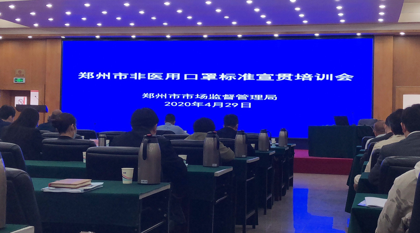 2020年4月29日,鄭州市非醫(yī)用口罩標(biāo)準(zhǔn)宣貫培訓(xùn)會(huì)在鄭州市市場(chǎng)監(jiān)督管理局九樓會(huì)議室召開。鄭州市市場(chǎng)監(jiān)督管理局副局長(zhǎng)王擁軍,河南工業(yè)大學(xué)標(biāo)準(zhǔn)化與質(zhì)量檢測(cè)中心主任助理、全國(guó)糧油標(biāo)準(zhǔn)化技術(shù)委員會(huì)糧食儲(chǔ)藏及流通分技術(shù)委員會(huì)副秘書長(zhǎng)陳衛(wèi)東,國(guó)家棉花及紡織服裝產(chǎn)品質(zhì)量監(jiān)督檢驗(yàn)中心副主任憨文軒出席會(huì)議。鄭州市所屬各(市、區(qū))、開發(fā)區(qū)市場(chǎng)監(jiān)督管理局標(biāo)準(zhǔn)化科科長(zhǎng),口罩生產(chǎn)企業(yè)負(fù)責(zé)人等參加會(huì)議。會(huì)議由鄭州市市場(chǎng)監(jiān)督管理局標(biāo)準(zhǔn)化處處長(zhǎng)劉彬彬主持。