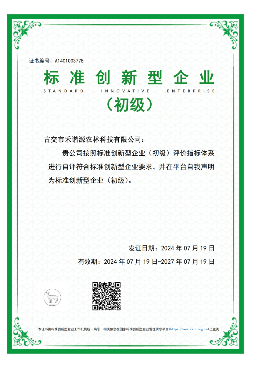 古交市禾諧源農林科技有限公司獲評標準創(chuàng)新型企業(yè)